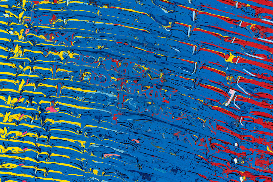 Additive Spectrum (networks), 2022, extends Beltrán’s exploration of the three primary colors as a generative system—like an alphabet whose few signs yield infinite words. Thin networks of red, blue, and yellow accumulate and interlace, producing secondary hues through optical mixing rather than pigment blending. The work translates structure into sensation: repetition becomes syntax, and color becomes a field of shifting “speech.” It proposes painting as a grammar where simple units scale into complex meaning.
